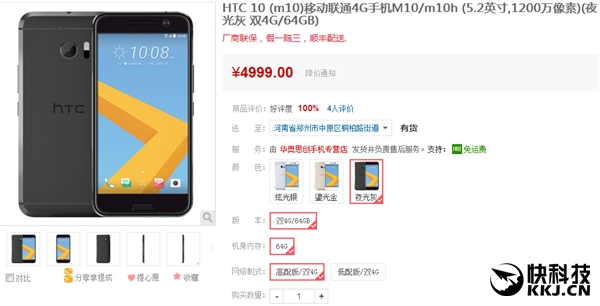 国美电器上面有三个版本号,4999元的HTC 10点评为4,3799元的提交订单立减499元但点评也但是12,此外也有个4599元的说白了顶配版,立减159元,点评12。