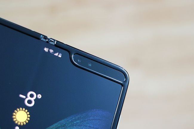 这款产品定位终究还是手机,为此,三星Galaxy Fold依然遵循着打开状态下能够保持单手持握和双手操控的可能性,同时,这款手机还在内屏顶端设计了前置双摄,其中前置主摄同样是1000万像素,并附带800万像素景深虚化镜头。